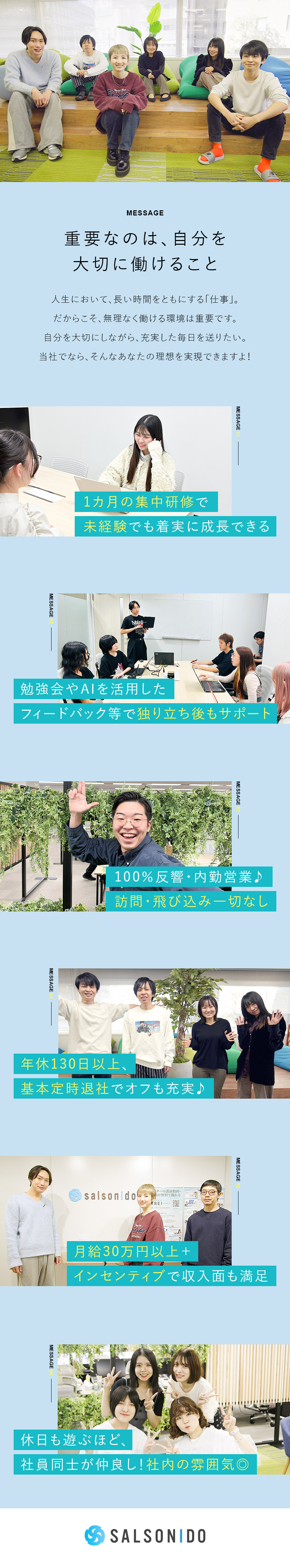 インサイドセールス/未経験歓迎/月給30万円以上/土日祝休