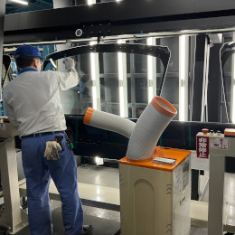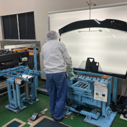 ガラスに部品を付けたり、中間膜を挟んだりして、付加価値を与える作業です。また、検査も行います。