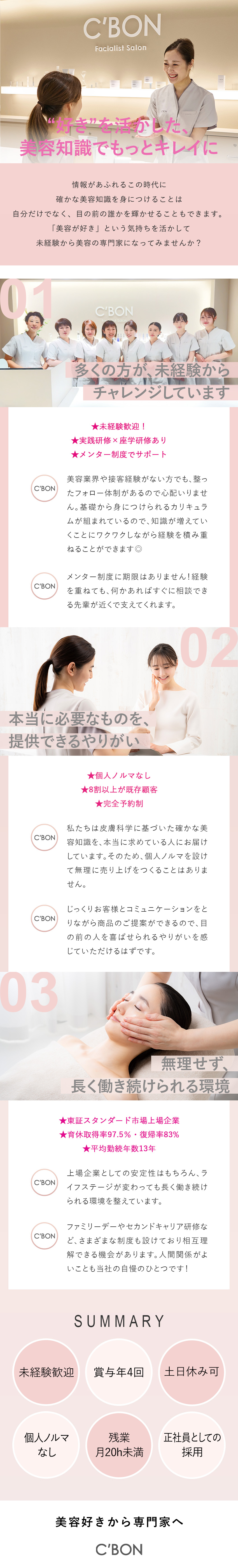【東京/未経験歓迎】化粧品の施術・接客・販売※9割以上が未経験スタート/育休復帰率98%/連休取得可