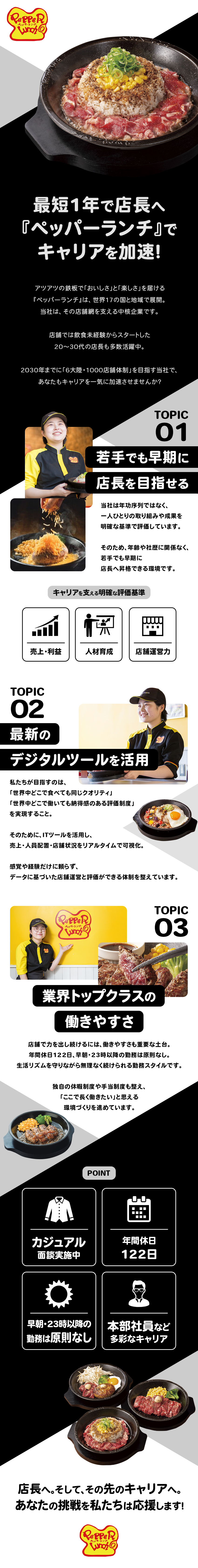 ■希望エリアの「ペッパーランチ」での店舗運営・管理業務/◎早朝・23時以降の勤務は原則なし/研修充実