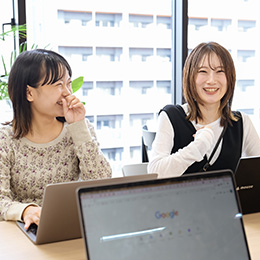 部署や役職を問わずコミュニケーションが取りやすい環境で、仕事の相談はもちろん、ちょっとした疑問も気軽に共有しながら業務を進めています!