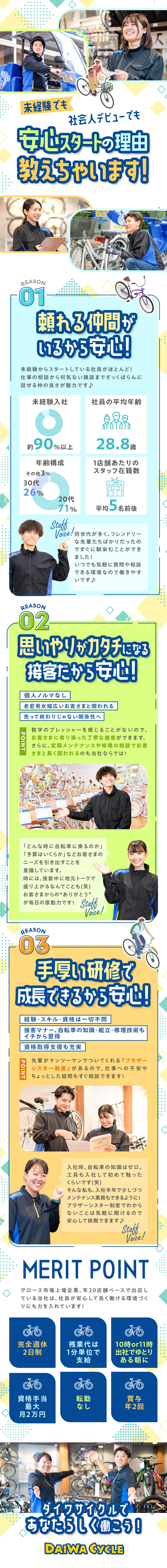自転車の店舗スタッフ/完全週休2日/未経験歓迎/面接1回