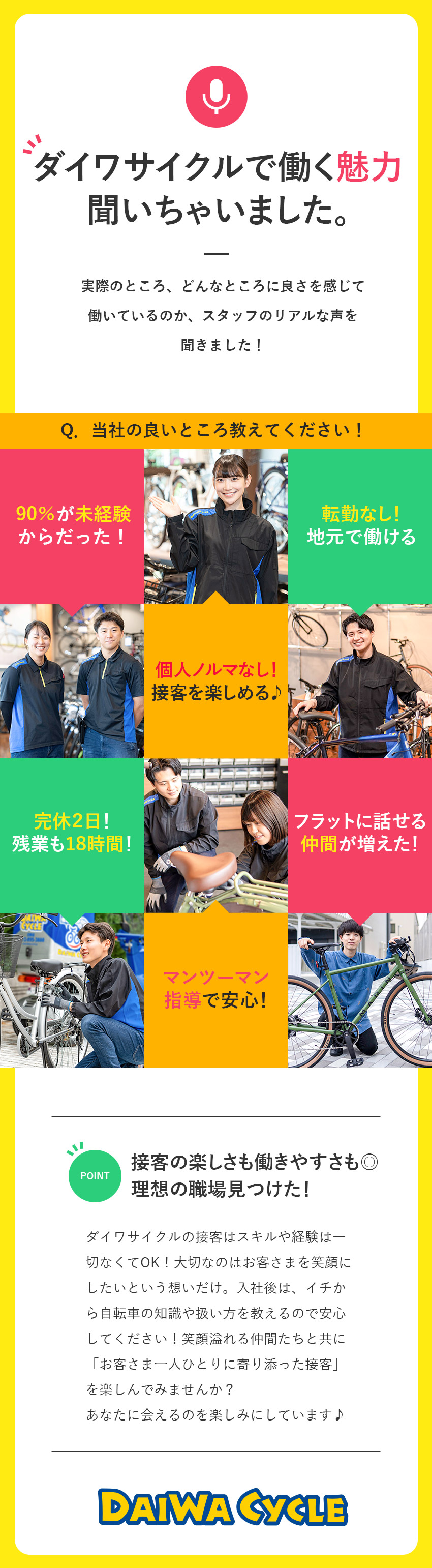 自転車の店舗スタッフ/完全週休2日/未経験歓迎/面接1回