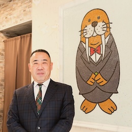 同社マスコット「セイウチくん」にそっくりな大谷代表。実直な性格が社員を大切にする姿勢に表れています。