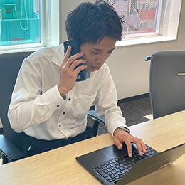 まずは受注対応や社内サポートなど、社内での実務を担当。