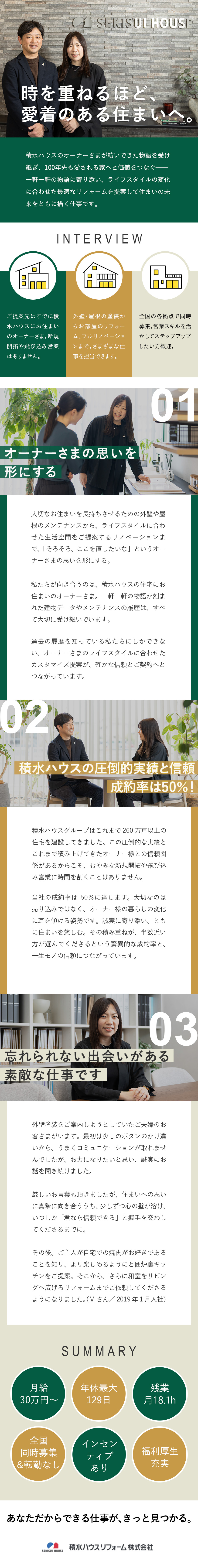 【香川/転勤無】リフォーム営業◆未経験・第二新卒◎/積水ハウスG/年休最大129日/新規開拓無