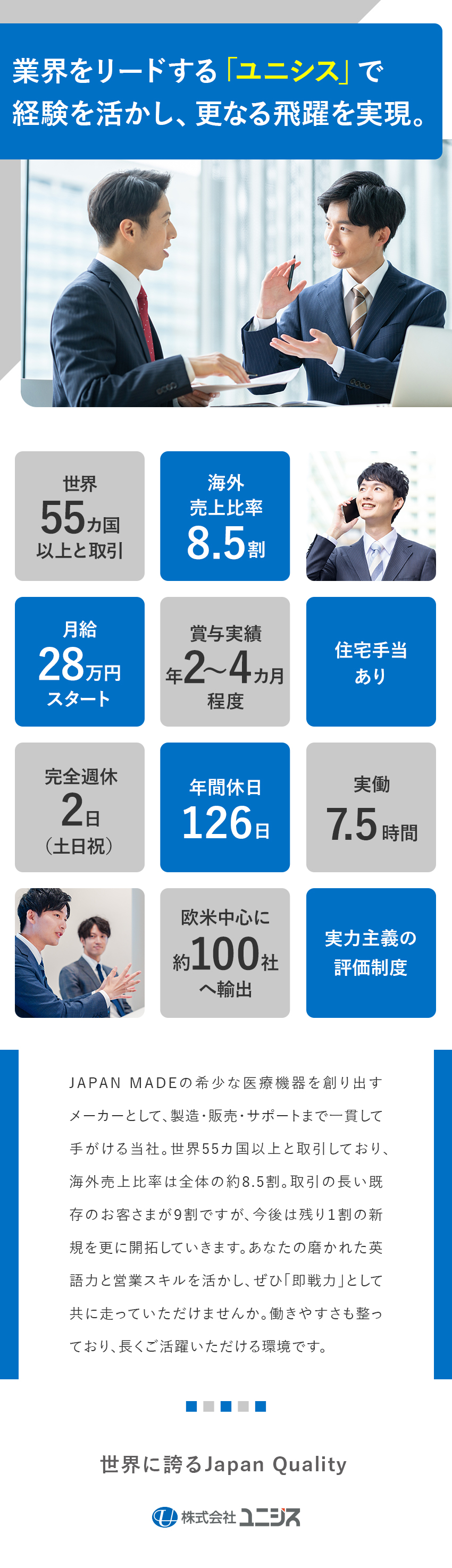 医療機器の海外営業/年休126日/土日祝休/英語力を活かす