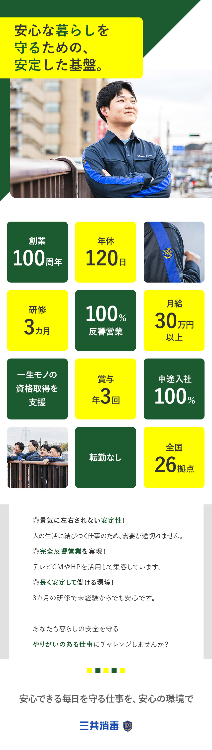 【3カ月の研修制度&資格取得支援制度あり!】100%反響営業★環境衛生サービスの営業をお任せします。