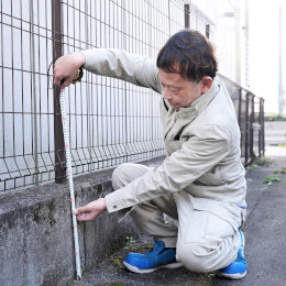 壊れたフェンスの状況をしっかり計測!状況証拠となる写真撮影(デジカメ)や聴き取りも行います。