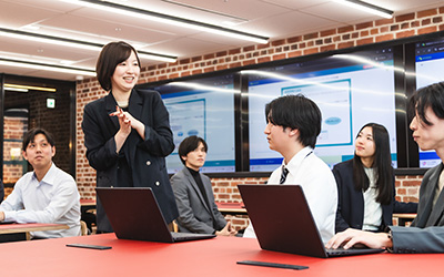 「IT業界が気になるけれど、経験や適性に自身がない…」そんな方の不安を払しょくできるのが同社の研修体制。入社後は最大3カ月間、自社のITスクールを受講します。いきなりITの専門的な話から入るのではなく、ビジネスマナーやIT業界の基礎的な知識からお教え。同じくほとんどが未経験から入社している同期と一緒に学べる点も心強いと評判です。