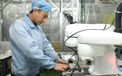 加工の準備、製品の取り出しなど簡単な作業から覚えていただき、徐々に成形業務をお任せしていきます。