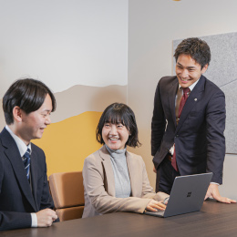 ほかにも、定期的な面談を通じて、結果だけでなくプロセスもしっかり評価。困ったときには上司や同僚がすぐ相談に乗ってくれるので、未経験でも焦らずステップアップしていける環境が整っています。