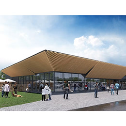 当社製品は、最近注目の建物にも数多く採用されています。(写真は隈研吾氏監修の『佐野パーク』)