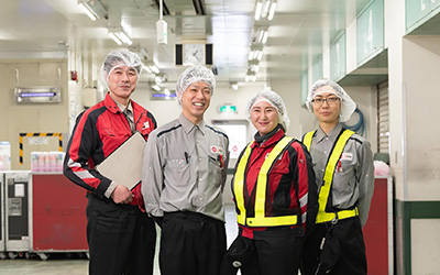 コツコツ&モクモクと取り組みたい方は搭載を、運転が好きな方は特殊車両の運転(大型運転免許手当あり)、コミュニケーションが得意な方は客室乗務員との引継ぎをメインに担当するなど、自分の“得意と個性”を活かした仕事に取り組めます。