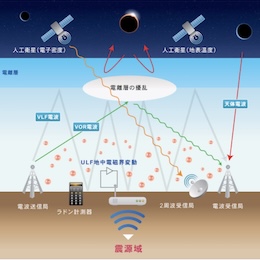 地震の前兆現象を観測し、収集した観測値を過去の分析結果と照らし合わせながら「いつ」「どこで」大規模地震が発生するのかをお知らせするものです。