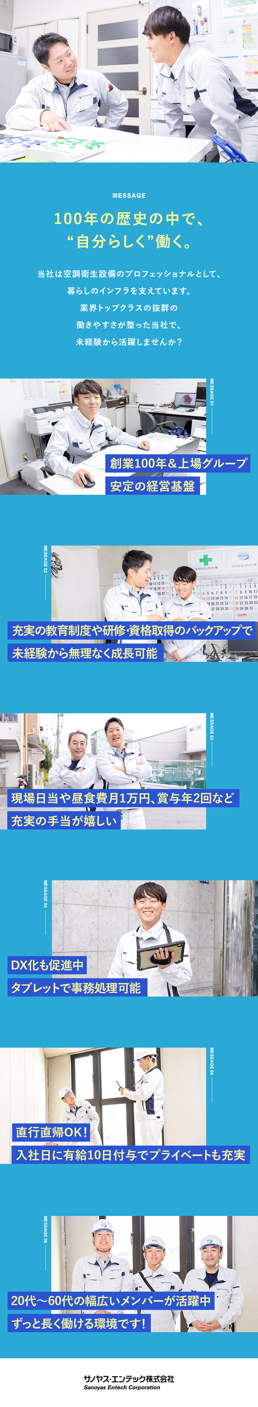 空調設備の施工管理/創業100周年/賞与4カ月/年休125日