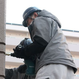 入社後は先輩に同行し、道具や資材の名前などの基礎知識の習得や、道具を渡したり資材を運んだりするなど、簡単な作業から始めていただきます。業務に慣れてきたら、換気フードの交換といった業務に挑戦し、徐々にできることを増やしていきます。
