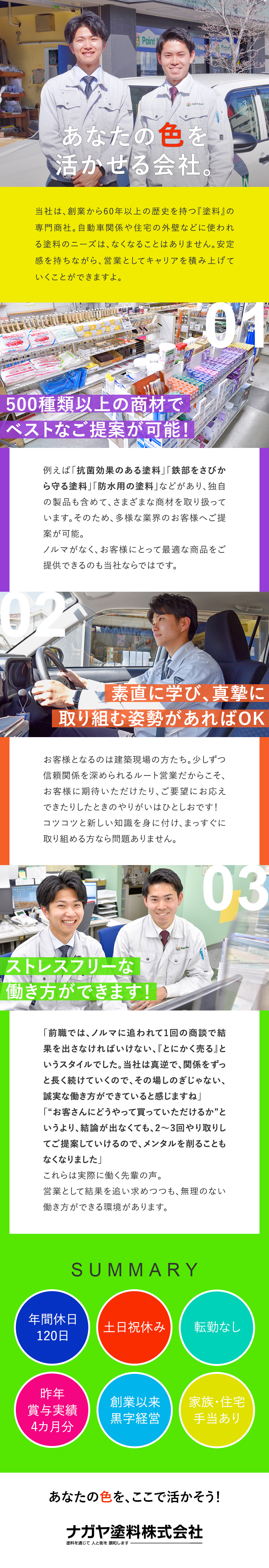 ルート営業/業界未経験歓迎/土日祝休/賞与年2回/転勤なし