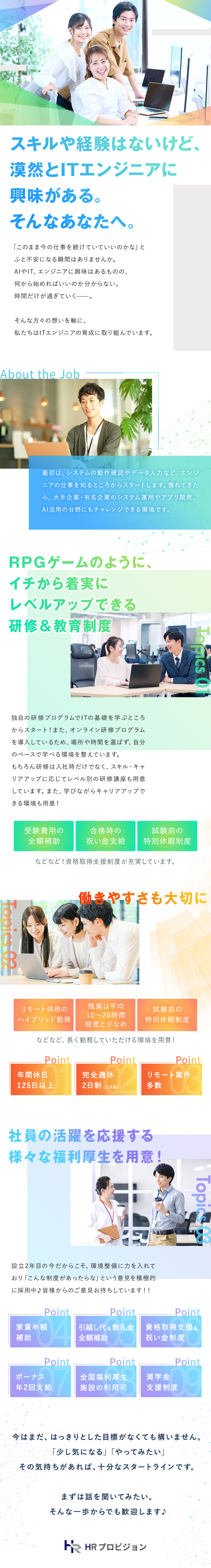 未経験大歓迎/初級ITエンジニア/リモート案件多数/研修充実