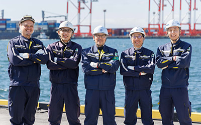 24時間勤務の際、例えば1隻目と2隻目が立て続けに港に着き、動き続けなければならない場合もあります。そんなときは辛さを感じることもあるそう。忙しさから安全面への配慮が欠けてしまうと、大事故に繋がってしまうこともあるため、油断せずに緊張感を持って進めるようにしましょう。もちろん大きな声で声掛けを行うなど、さまざまな工夫を行っておりますが、一人ひとりの意識が大切です。