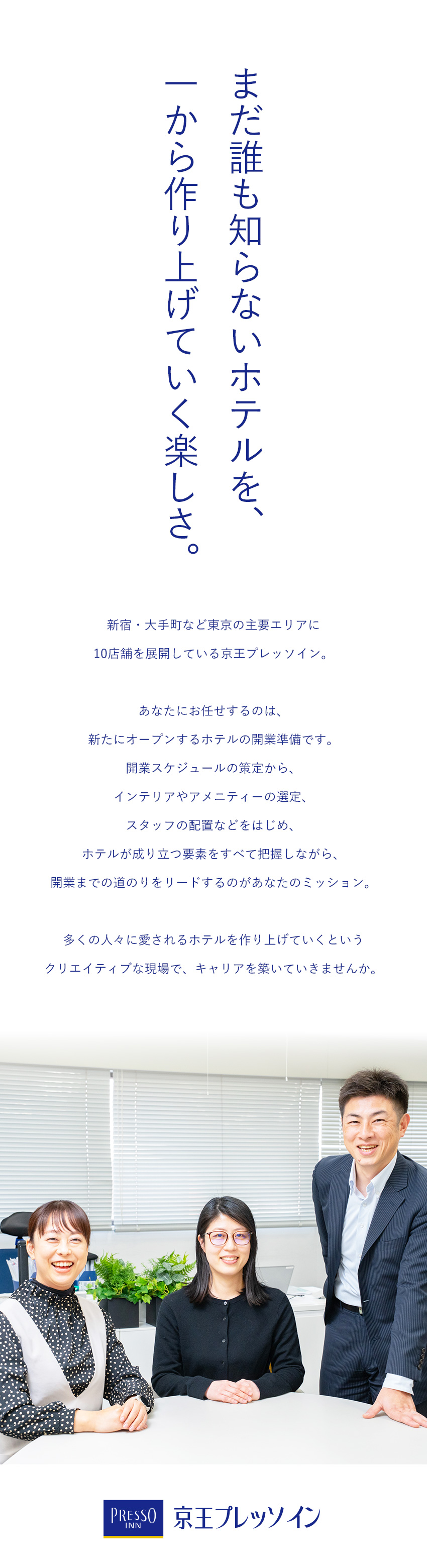 ホテルの開業準備/新規出店経験者歓迎/フレックス/連休取得可