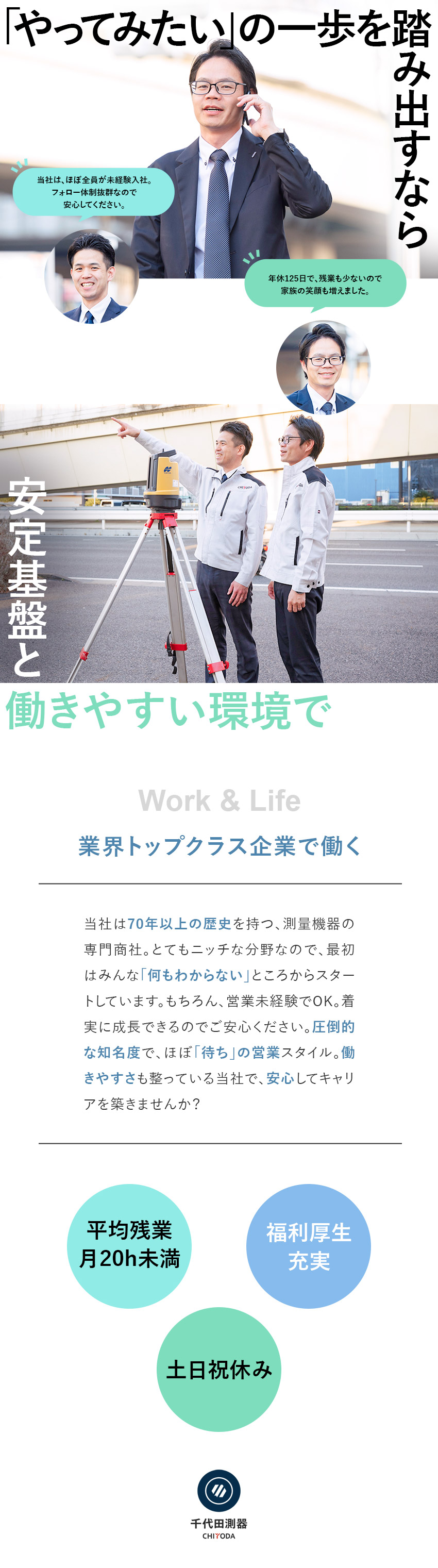 測量機の法人営業・既存9割/未経験歓迎/賞与6カ月/転勤なし