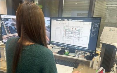 お話を伺ったのは2024年2月入社のKさん。今回ご入社の方をサポートいただきますが、入社後は図面作成・積算の補助業務からスタートし、スキルに合わせて成長できる環境を整えられているのだそう。
