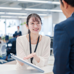 入館の手続きなども担当します。社内外の様々な人とのコミュニケーションを大切にしていきましょう。