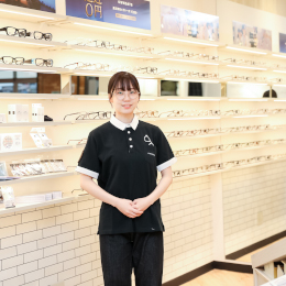 「丁寧な研修を受けたおかげで、商品知識や接客スキルをしっかり身につけることができました。店舗では、バディの先輩がいつでも相談にのってくれるので、不安なく仕事ができています。オンデーズのメガネはデザイン性が高いものが多く、自分自身も楽しんで接客ができるのも、うれしいポイントですね!」
