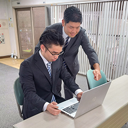 先輩社員がすぐ隣りで一つひとつの業務についてわかりやすく、丁寧に指導。