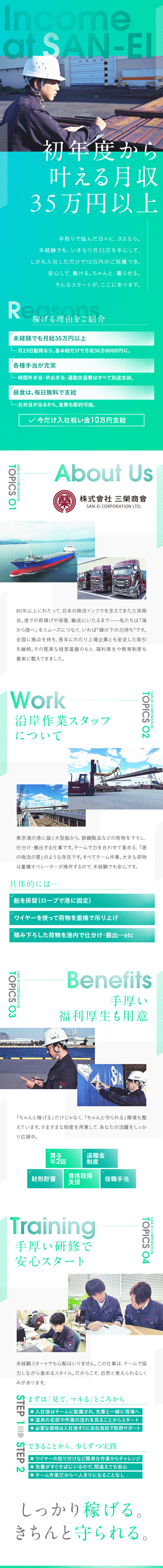 港湾作業スタッフ/入社2~3年で年収500万円可/未経験歓迎