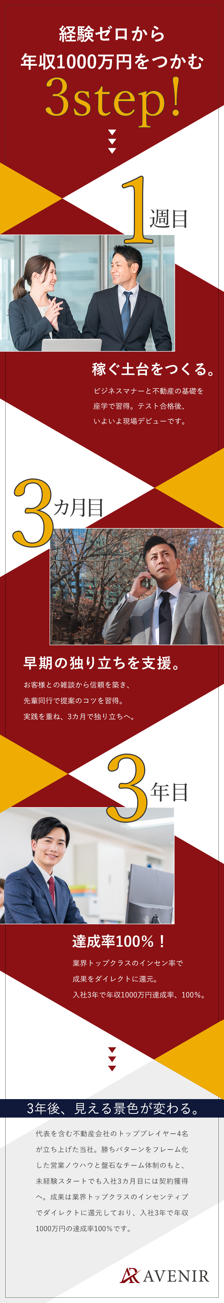 入社3年で年収1000万円以上の達成率100%/不動産営業