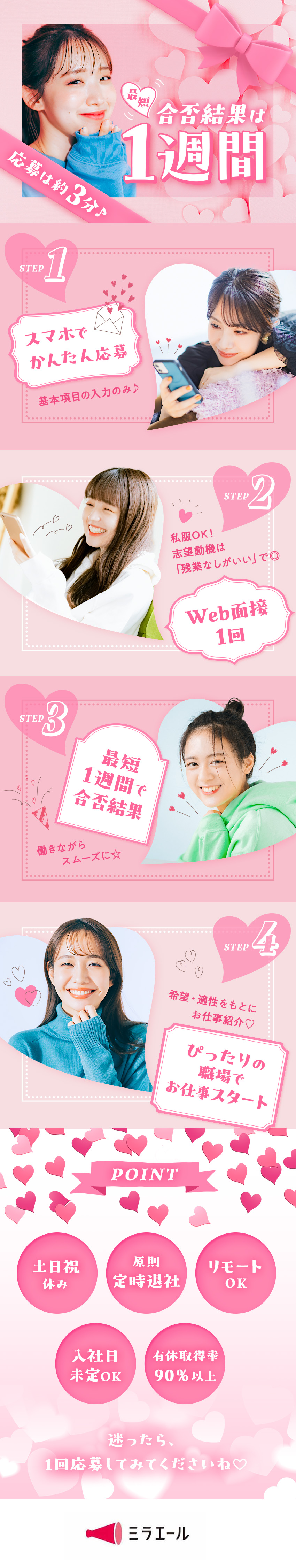応募から最短1週間で合否結果をご連絡します♪