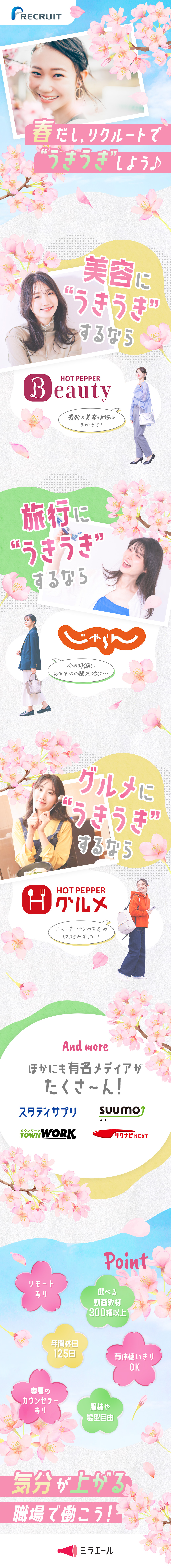 ※運営元のリクルートでの雇用ではなくスタッフサービス「ミラエール」制度での採用です。