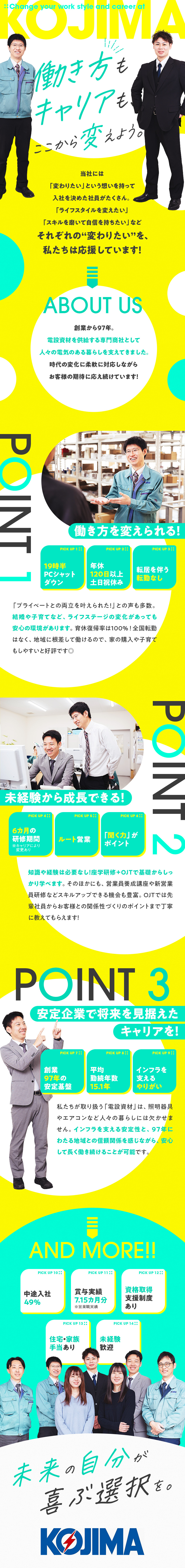 電設資材のルート営業/未経験歓迎/賞与7.15カ月/土日祝休