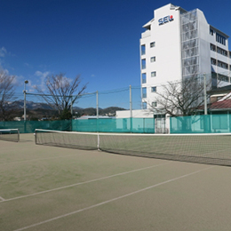 施設が充実していることも、メリットのひとつ。天気の良い日はテニスで汗を流すスタッフもいます。