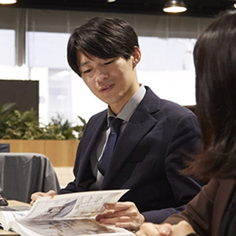 今までクリエイティブな仕事とは無縁だったので、入社前は不安があったのも事実です。しかし、入社後、手厚くサポートしていただき、企画や提案のノウハウをマスター。今ではプロらしく自信をもって提案しています。