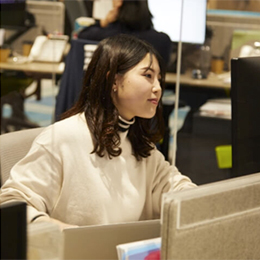 今までクリエイティブな仕事とは無縁だったので、入社前は不安があったのも事実です。しかし、入社後、手厚くサポートしていただき、企画や提案のノウハウをマスター。今ではプロらしく自信をもって提案しています。