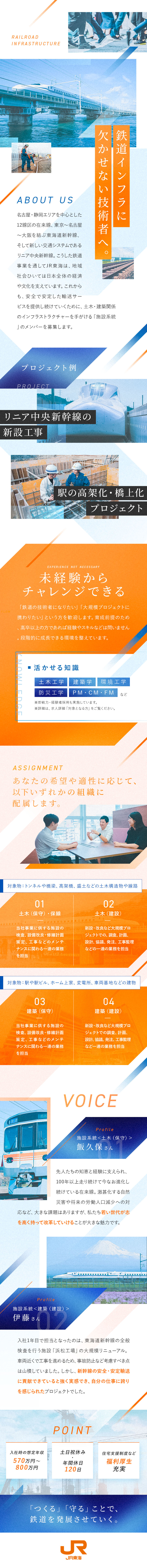 【未経験歓迎】リニア中央新幹線や東海道新幹線、在来線などに関する土木や保線、建築業務を担当。