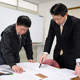 工事担当へ案件を引き継ぎ、注意点などを共有。