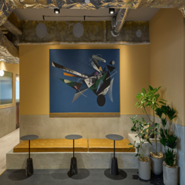 おしゃれなアートに囲まれながら、ちょっとした打ち合わせや休憩にも使える空間です♪