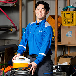 「水が出ない」「トイレが詰まった」など…水まわり・ガス設備などのトラブルでお困りのお客様さまのもとへご訪問するのがサービススタッフの役割です。修理や新しい機器の交換、この工事に関する見積り・提案などを行っており、給水装置も提案し工事をしています。