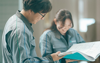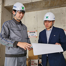 工事がどのように行なわれるのかを学ぶため、営業として工務部門と連携。