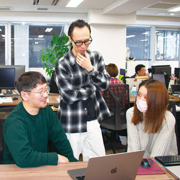 営業・ディレクター・技術者が職種の垣根を越えて専門知識を持ち寄るチーム体制が、一人のアイデアでは届かない「課題の本質」を捉えた提案を可能にしています。