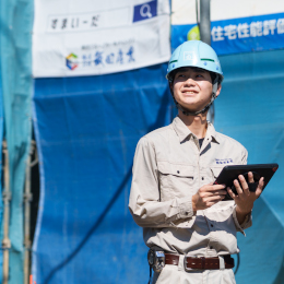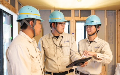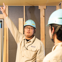 施工管理を担当する住宅は、これからお客様がお住まいになる大切なもの。スケジュール通りに引き渡しできるよう、工期にあわせて品質を担保しながらスピード感を持って取り組む必要があります。また、工事における騒音発生時のフォローなど、近隣住民の方とのコミュニケーションも大切。人の意見にしっかり耳を傾けようとする姿勢が評価されます。