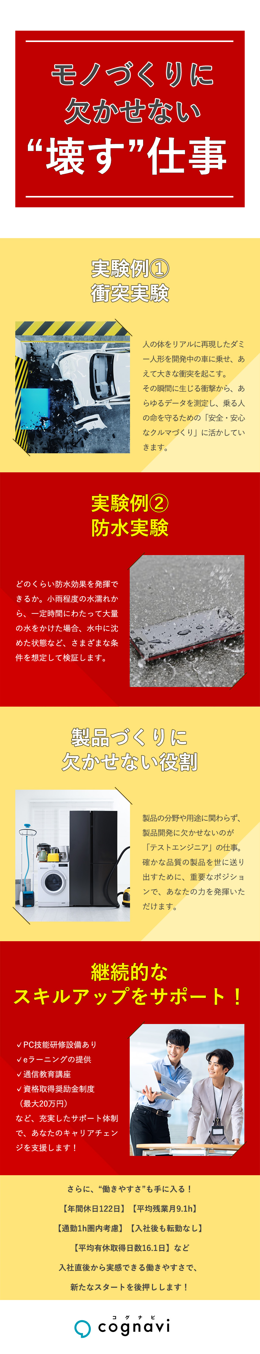 NEW締切間近実験評価/年休122日/製造・整備士・施工管理の経験が活きる