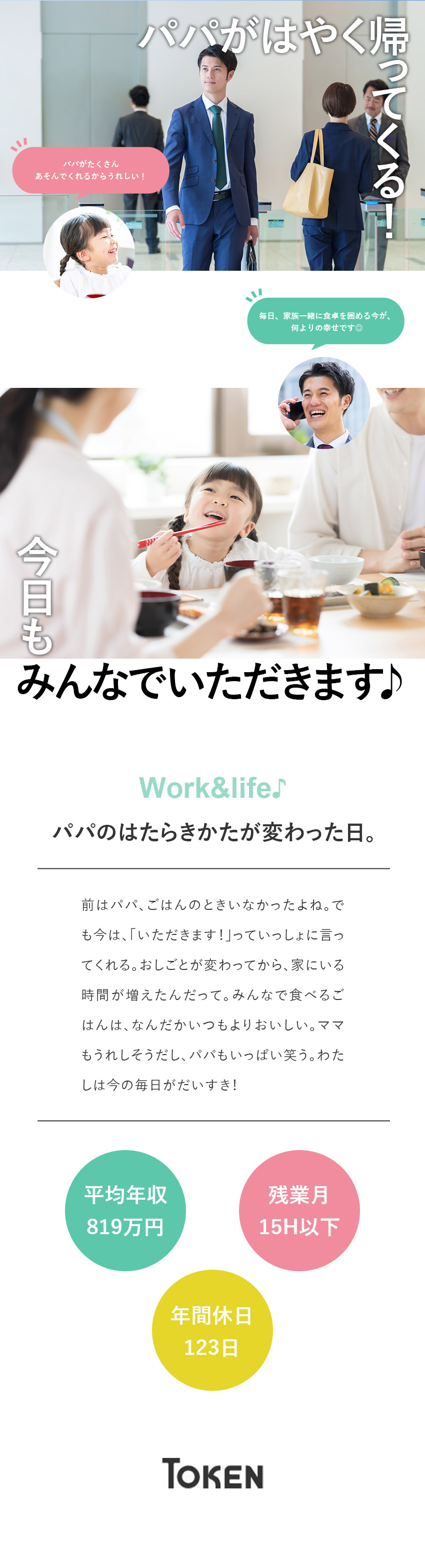 子どもとの時間が増える営業職/年休123日/月残業15H以内