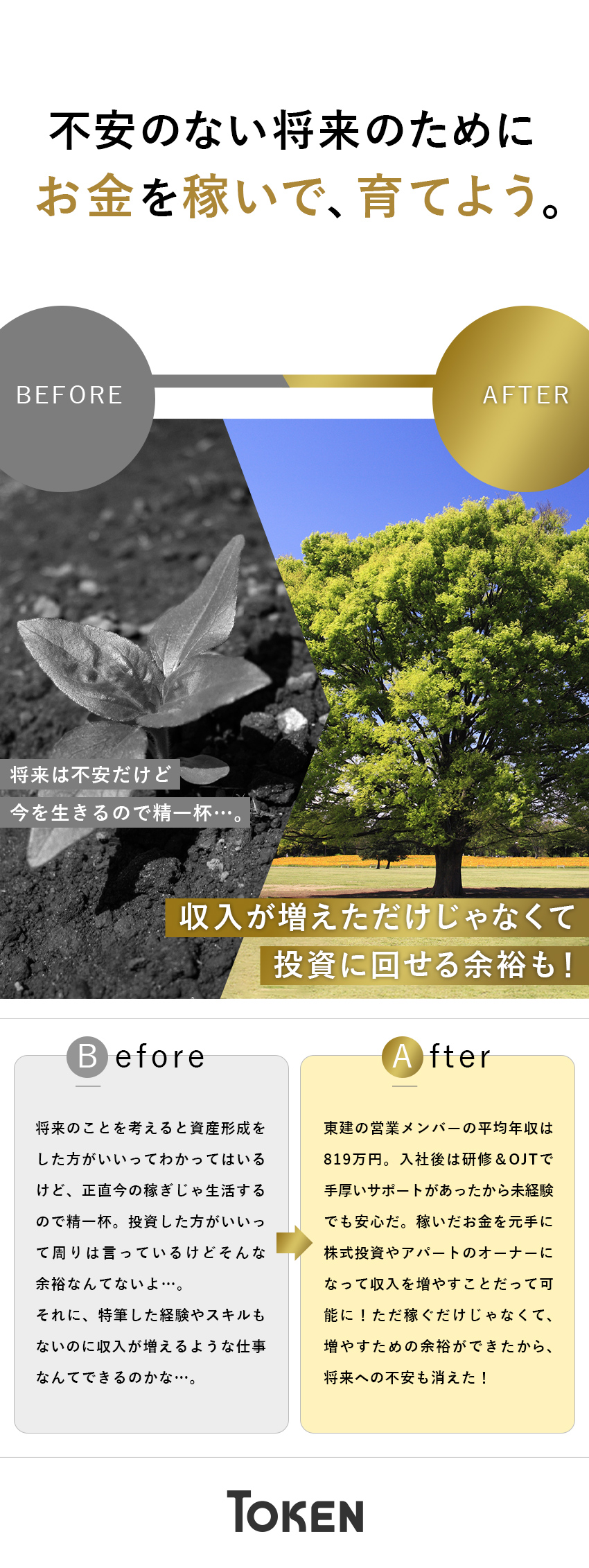 収入が増えて、将来へ不安のない資産形成ができるように。