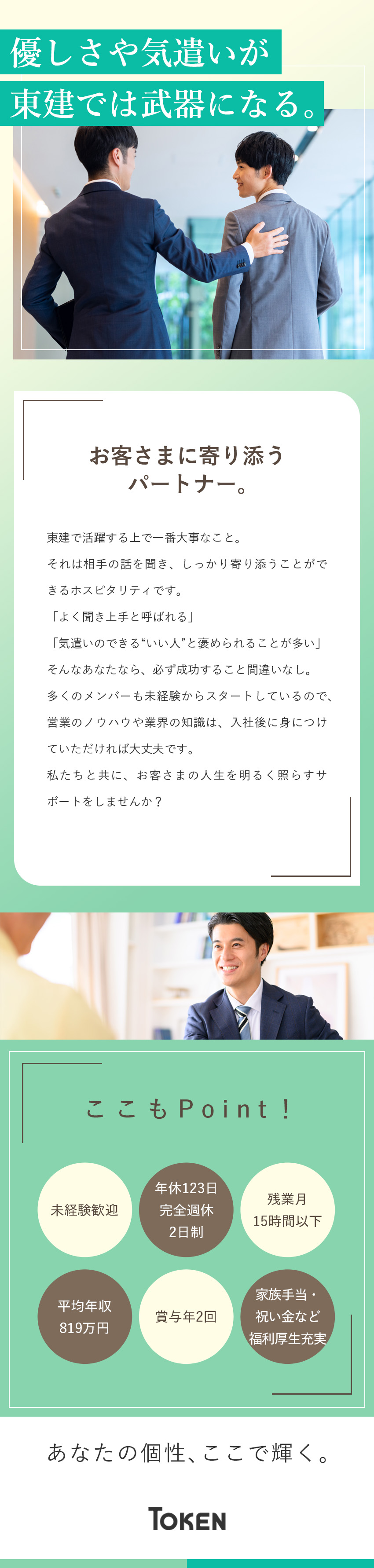 東建の営業は土地という高額なものを扱う仕事のため、何よりも信頼関係を構築していくことが大切です。