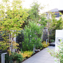 外からだけでなく、家の中からも緑が楽しめる空間を提供。毎日の生活に合わせたエクステリアが得意です!